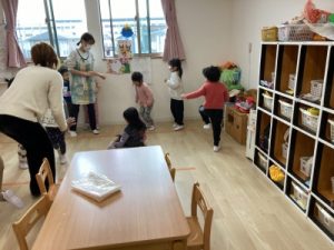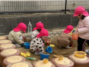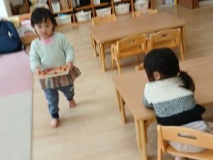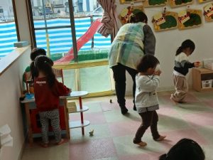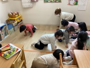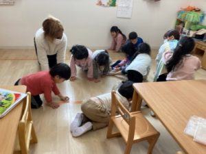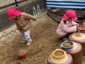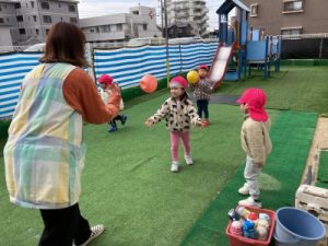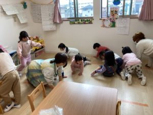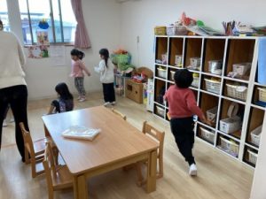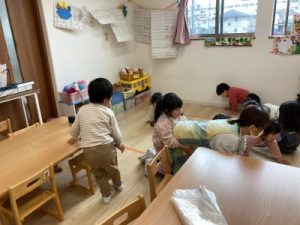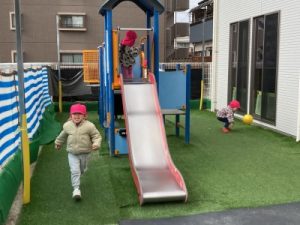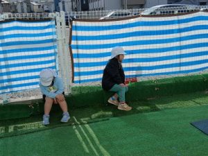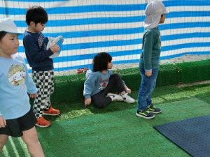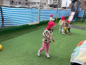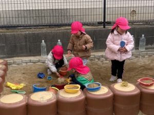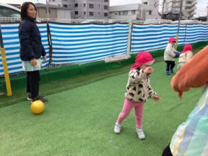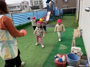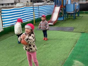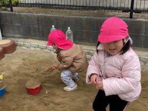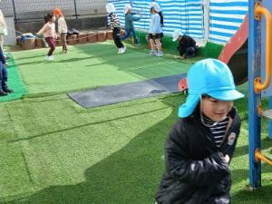 園庭はいつもぽかぽかですが、さすがに少しだけ冷たい風を感じました。