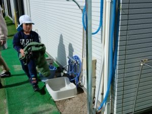 うさぎ、きりん、くま組はここでタッチをしてさよならです。