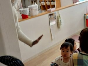 保育園へ戻ってきたひよこ組、玄関の様子がこちら↓↓