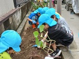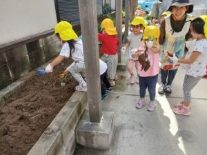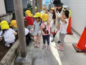 ひよこ組、サツマイモと一緒に記念撮影🍠