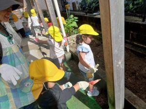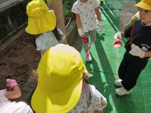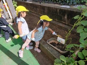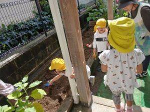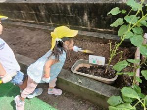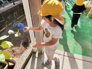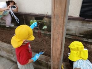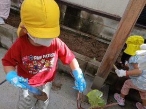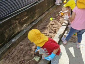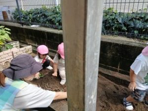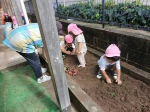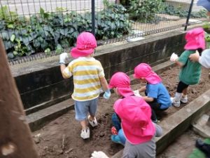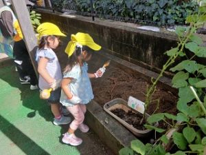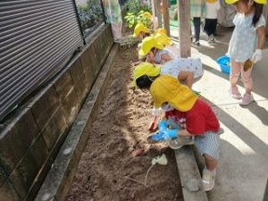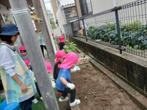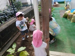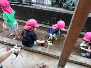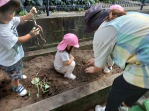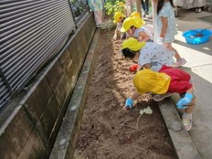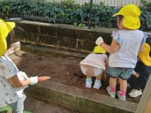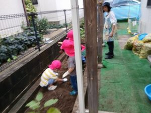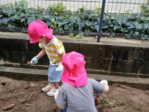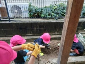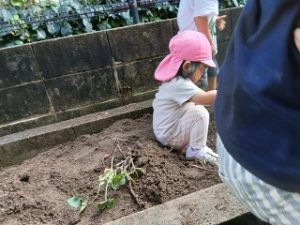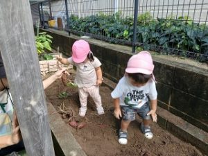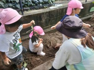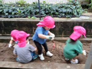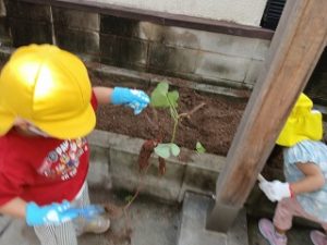 毎日水やりをしてきたくまぞう組、楽しみにしていたお芋ほり(^^♪