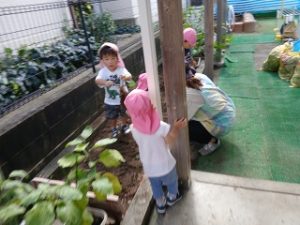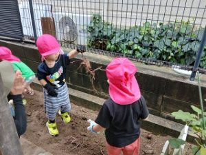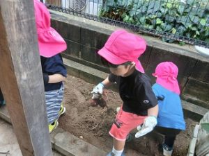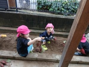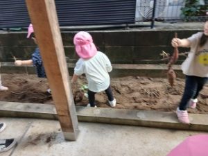 あひる組も土の中からサツマイモが出てきて大喜びでしたよ(^^)/