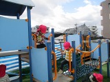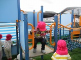 園庭では夏の間熱かった滑り台が、今日は熱くなくて、