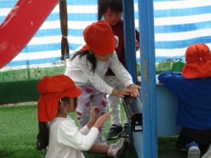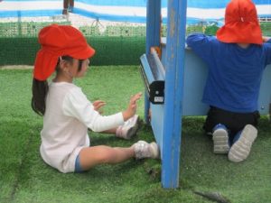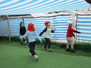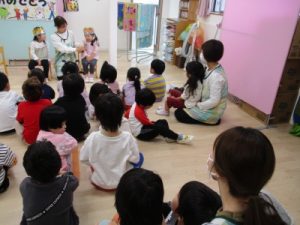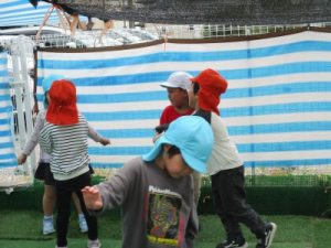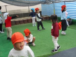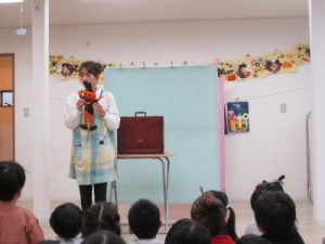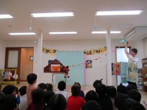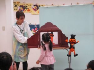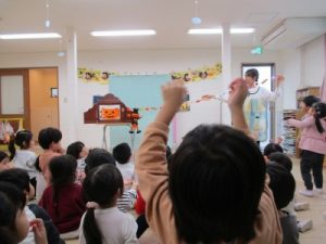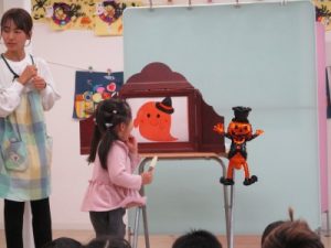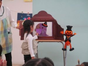 お化けが食べ他の物の色に変わっていき、子どもたちも興味津々👀くぎ付けでした👀