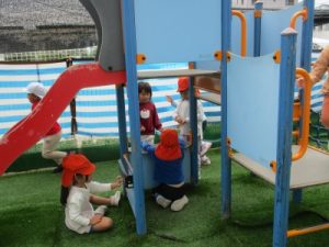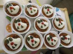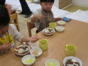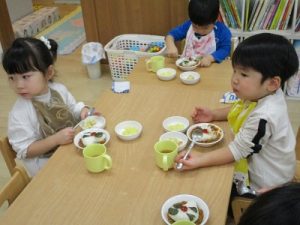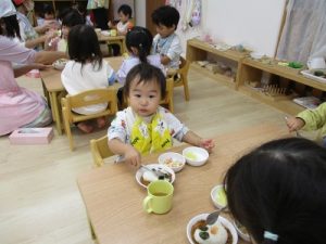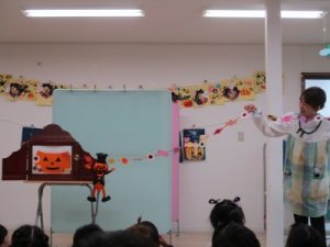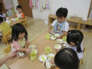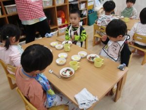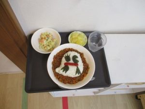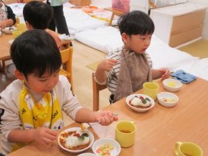 お給食はお化けのドライカレー、とても喜んでモリモリ食べていましたよ。
