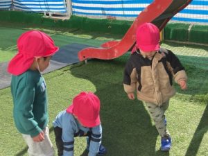 園庭はいつもぽかぽかですが、さすがに少しだけ冷たい風を感じました。