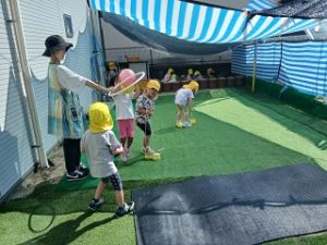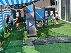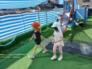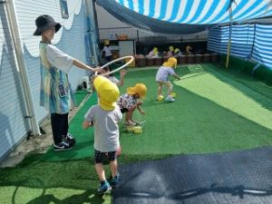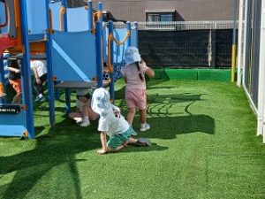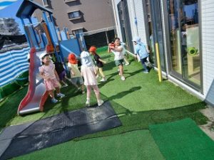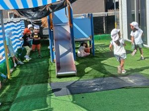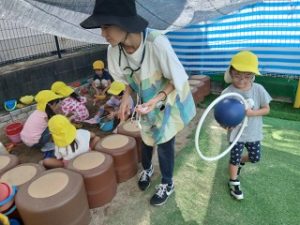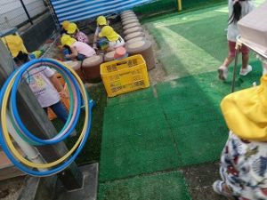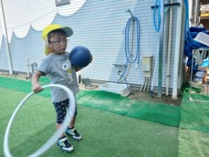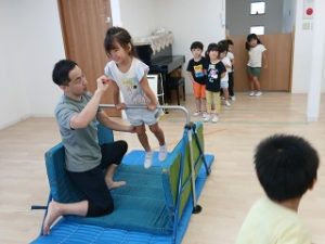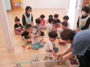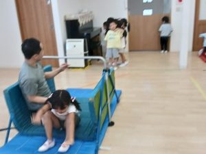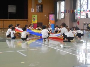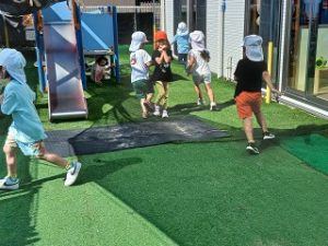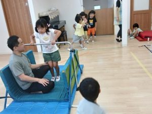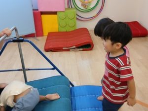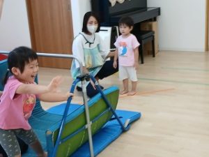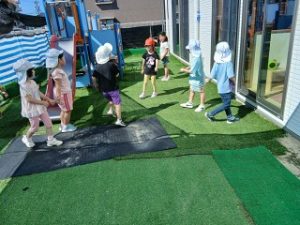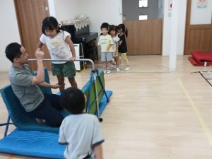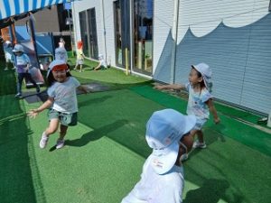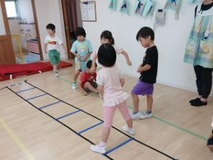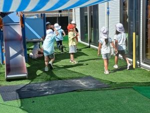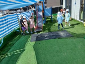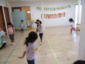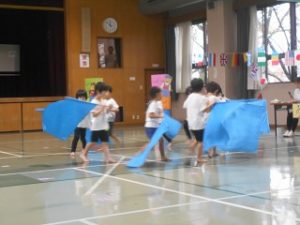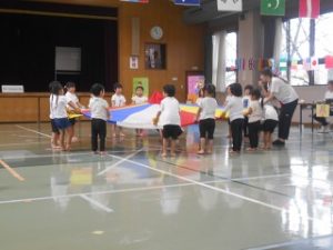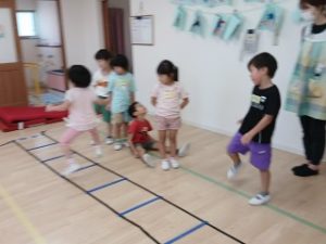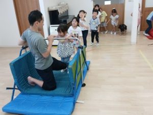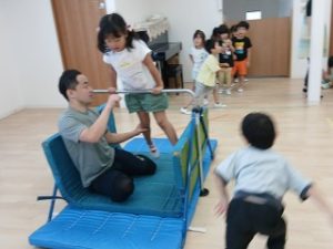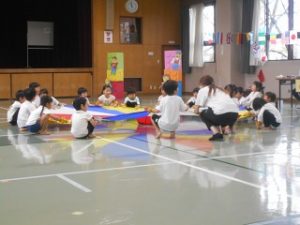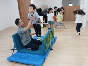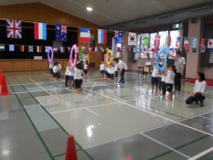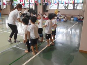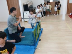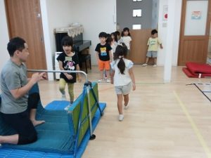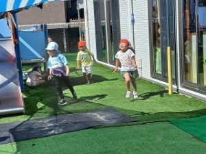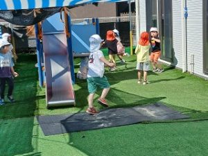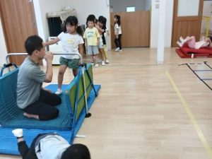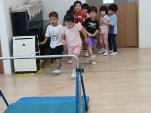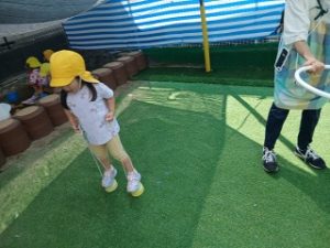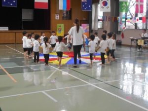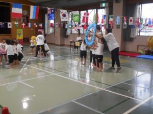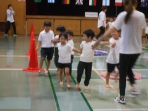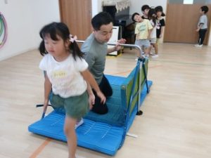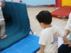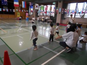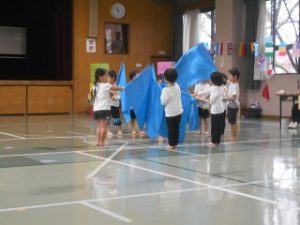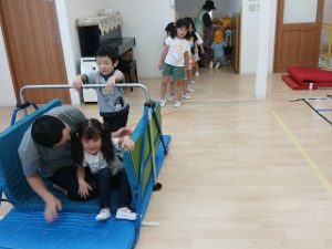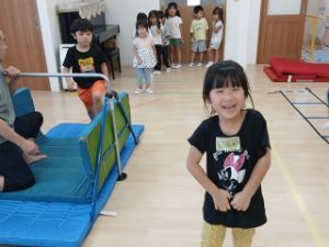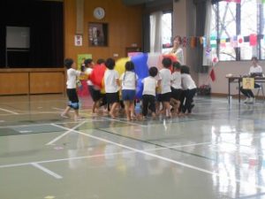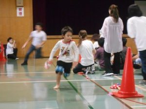 マットの上を乗り越えたり、玉入れなど、頑張っていました(^_-)-☆