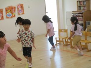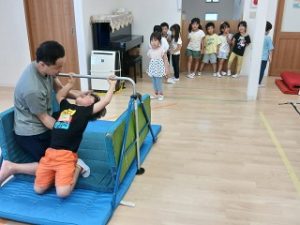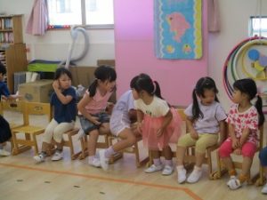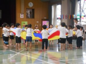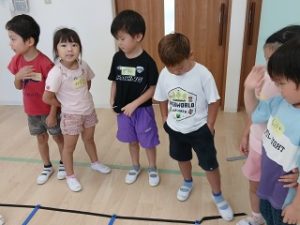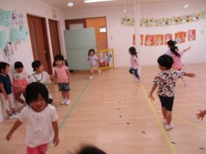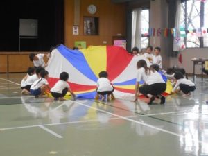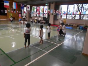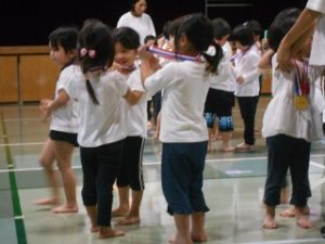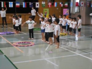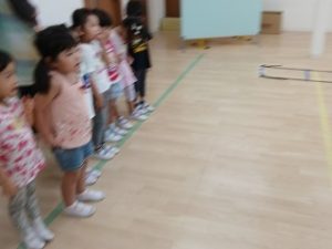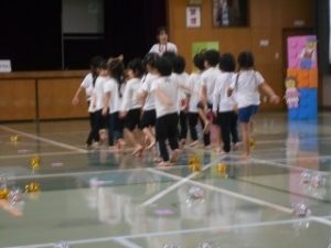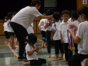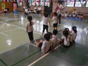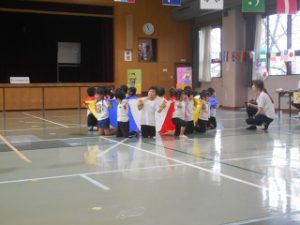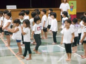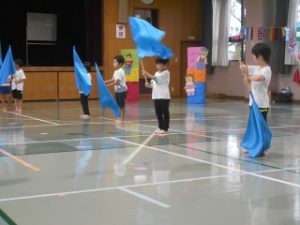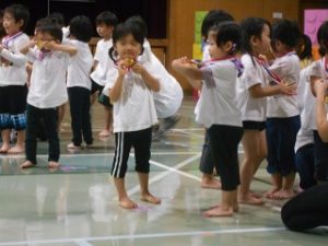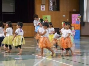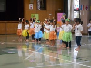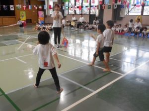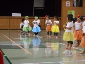 幼児クラスの子どもたち、頑張って練習してきました。おうちの方の前で楽しくできました。